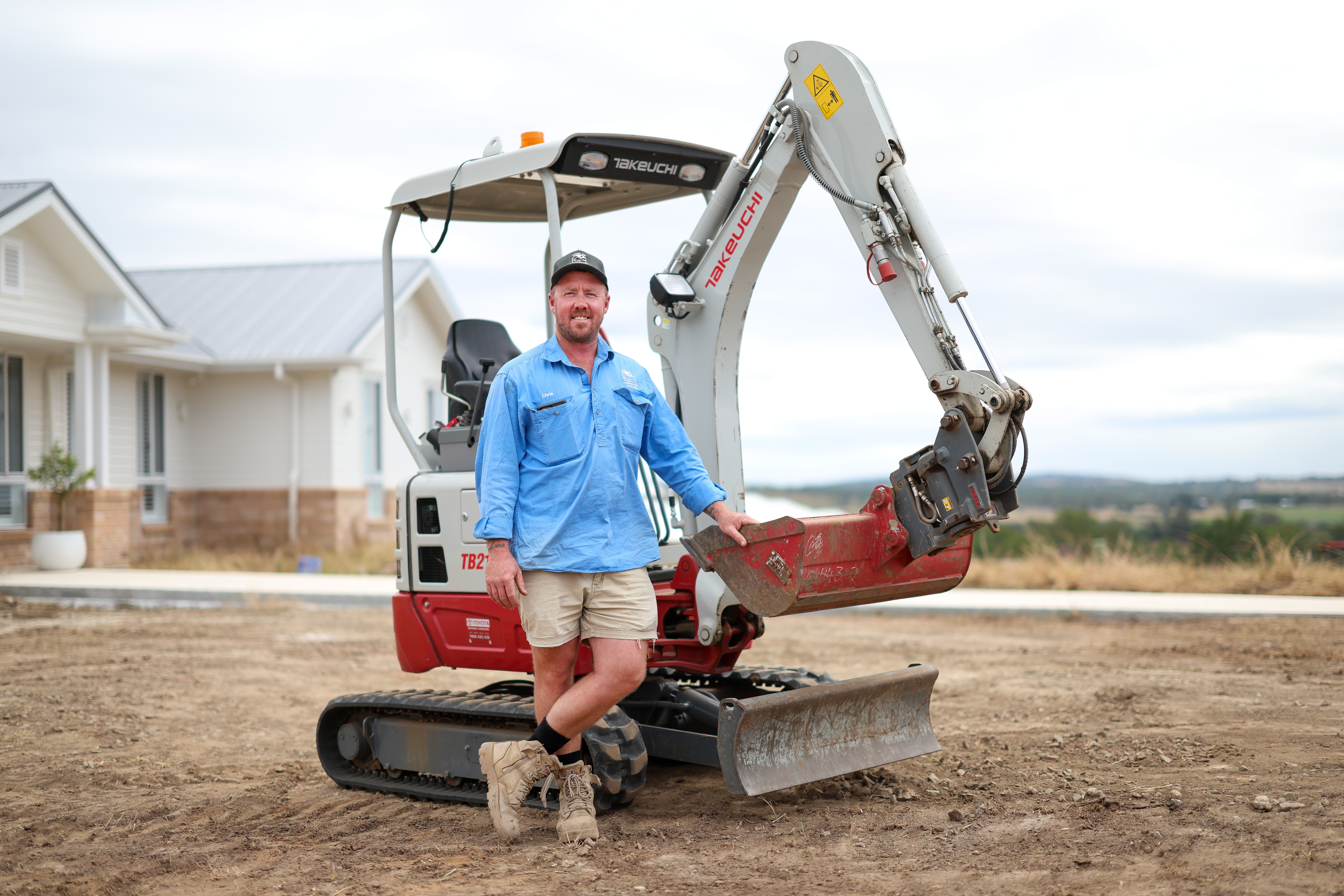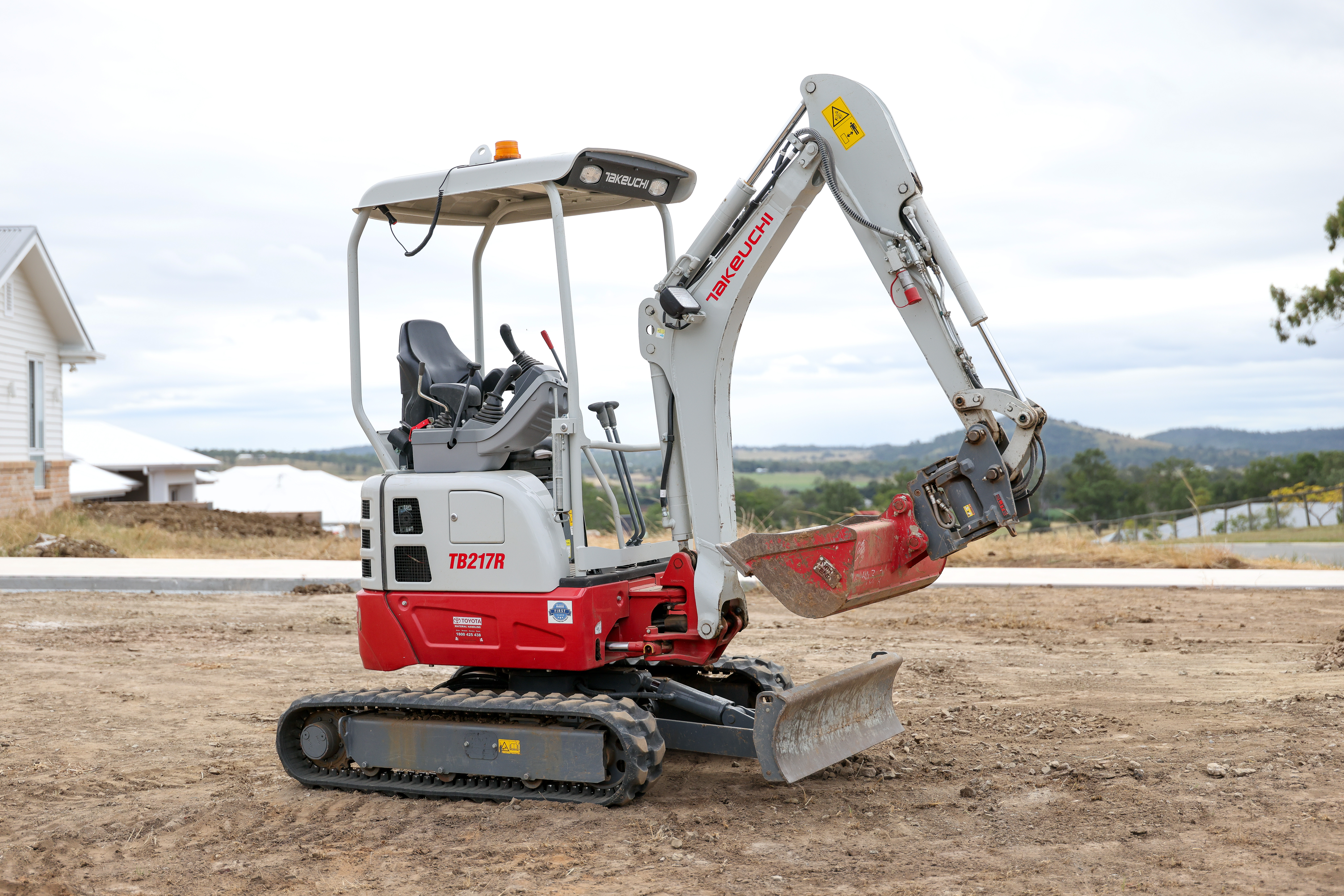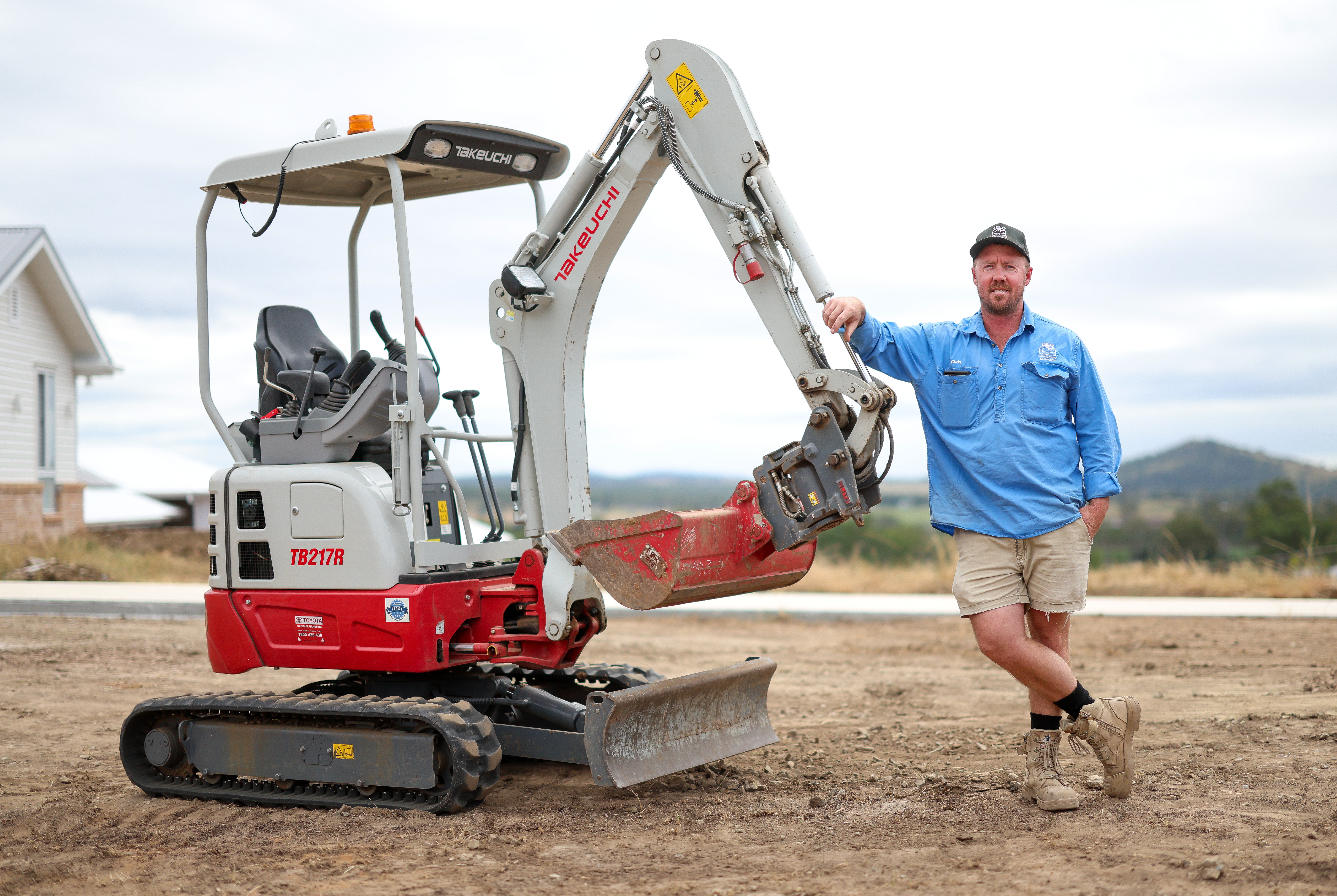 The Takeuchi is used primarily for short-term hire purposes by other businesses and tradespeople, clearing and levelling earth to make room for storage tanks, tiling and landscaping.