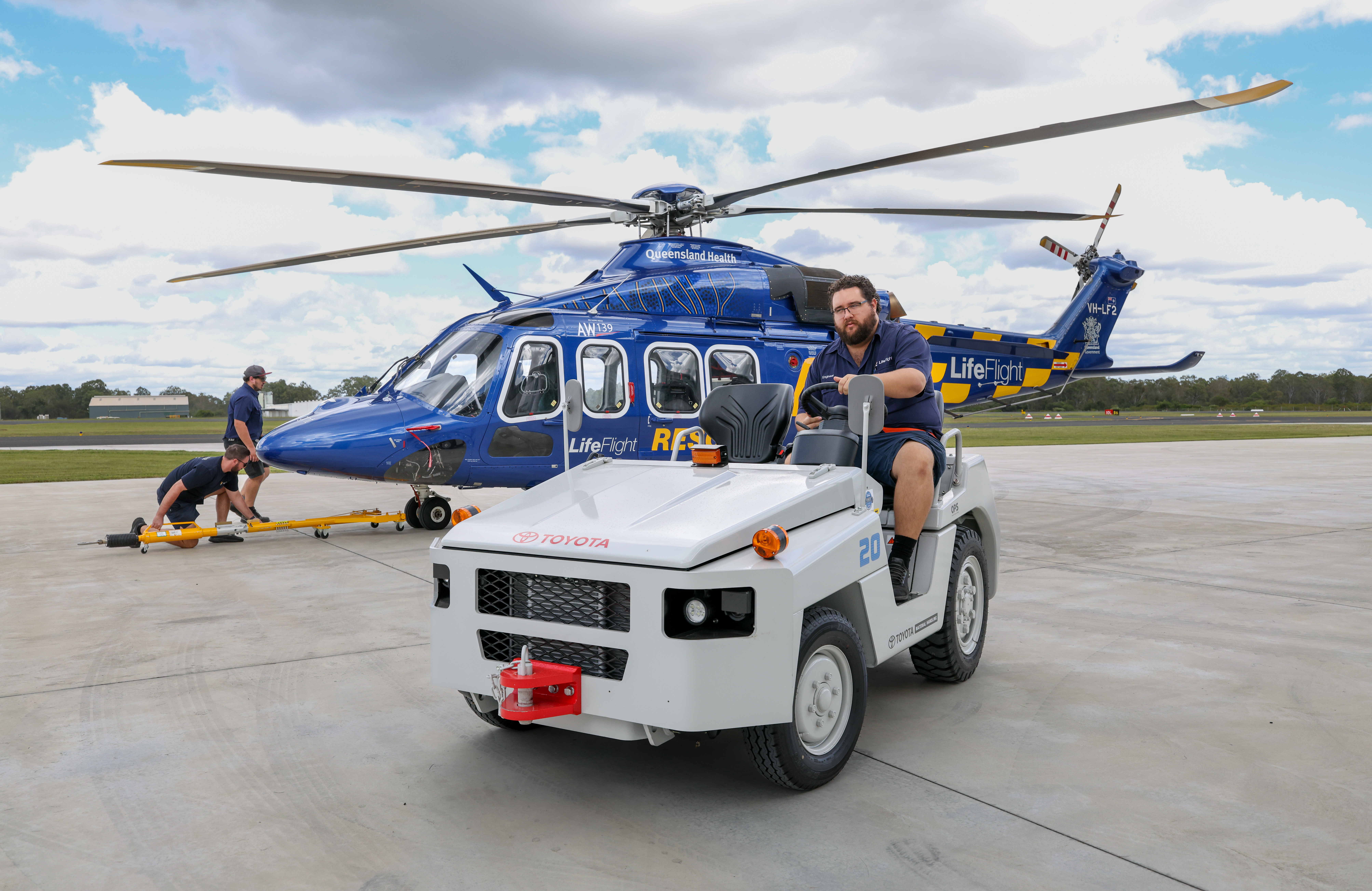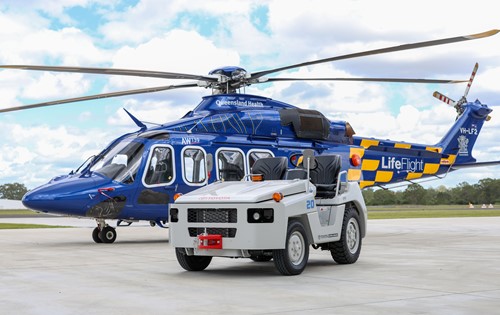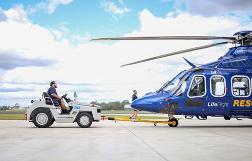 Five new Toyota TD20 tow tractors (tugs) have been positioned at LifeFlight facilities across Queensland, including the engineering hub known as the LifeFlight Clive Berghofer Maintenance Centre in Brisbane, all part of a major upgrade aimed at meeting strict operational response standards. More are scheduled for delivery.